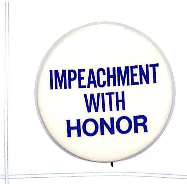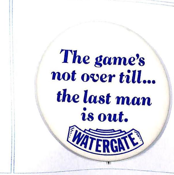 "Watergate in 72, Impeachment in 73, Agnew in 74 Kennedy in 76" 1 1/2" cello. $10 Buy Now |