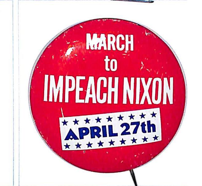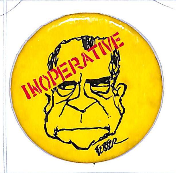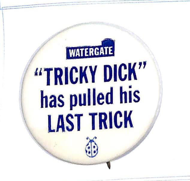 "Watergate in 72, Impeachment in 73, Agnew in 74 Kennedy in 76" 1 1/2" cello. $10 Buy Now |